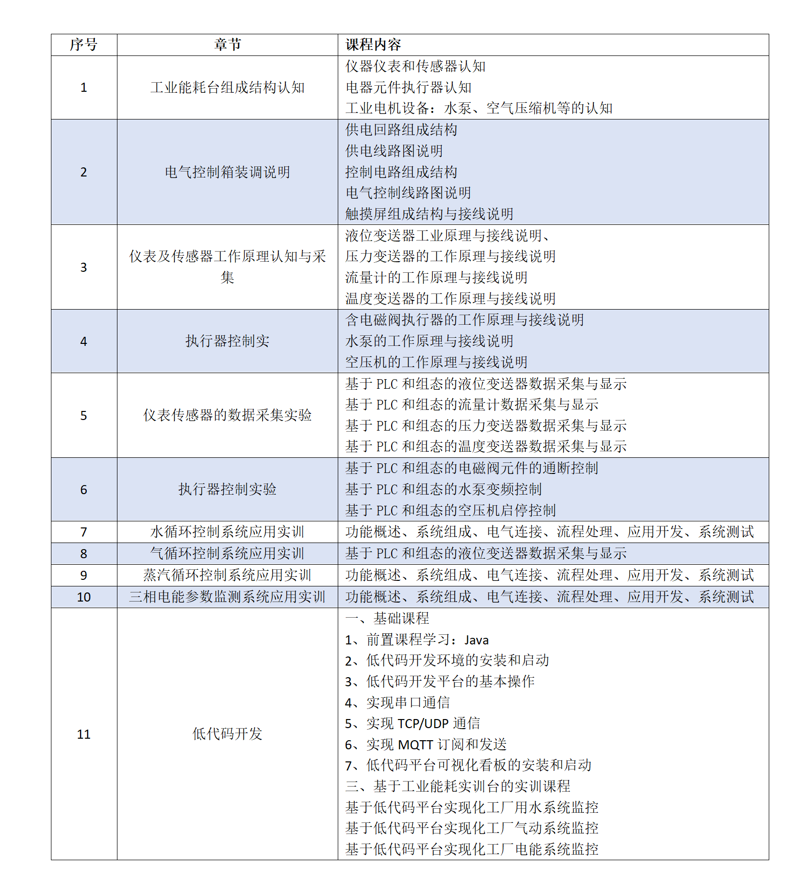 工業(yè)能耗監控實(shí)訓臺(型號:SeaIOT-EA-EC-02),是針對工業(yè)互(物)聯(lián)網(wǎng)專(zhuān)業(yè)、電氣自動(dòng)化專(zhuān)業(yè)、測控技術(shù)及儀器專(zhuān)業(yè)而設計的過(guò)程控制系統,涵蓋工業(yè)自動(dòng)化儀表、可編程控制器、工業(yè)現場(chǎng)總線(xiàn)、組態(tài)開(kāi)發(fā)、低代碼開(kāi)發(fā)等技術(shù),幫助學(xué)生掌握工業(yè)數據采集、過(guò)程控制、數據入網(wǎng)、數據分析的方法。是學(xué)校師生了解碳達峰、碳中和在行業(yè)案例水電汽能耗控制中具體實(shí)施的有效途徑。