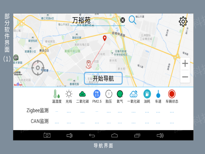 智能車(chē)載控制實(shí)訓臺(SeaIOT-L-IoV-01),是基于物聯(lián)網(wǎng)傳感器技術(shù)在智能汽車(chē)電子行業(yè)應用而設計的,集成全球衛星定位系統(GPS)、第四代移動(dòng)通信系統(4G)、無(wú)線(xiàn)傳感器網(wǎng)絡(luò )(ZigBee)等通訊網(wǎng)絡(luò ),配合Android高性能嵌入式平臺、電子控制器(CAN控制器)、各種傳感器(溫濕度、壓力、一氧化碳、二氧化碳、光線(xiàn)、PM2.5、攝像頭等),實(shí)時(shí)感知汽車(chē)行駛方位、車(chē)速油耗、四輪胎壓、環(huán)境參數等,將車(chē)載數據傳入本地終端和遠程平臺,實(shí)現車(chē)輛系統的虛擬儀表車(chē)載數據顯示、車(chē)輛定位、行車(chē)記錄、倒車(chē)影像、障礙物自動(dòng)避障等功能。