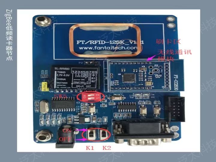 該產(chǎn)品包含125KHz低頻模塊、13.56MHz高頻模塊、915MHz超高頻模塊、2.4GHz有源讀寫(xiě)模塊、條碼指紋節點(diǎn)、智能電機控制節點(diǎn)、以及ZigBee協(xié)調器。實(shí)驗課程重點(diǎn)放在對各個(gè)頻段RFID模塊的管理、控制和上位機程序的應用開(kāi)發(fā)上,學(xué)生可以利用開(kāi)放的通信協(xié)議,使用上位機編程語(yǔ)言(C#)編寫(xiě)上位機應用程序與RFID模塊、二維碼指紋識別節點(diǎn)、智能控制板進(jìn)行數據交互,實(shí)現各種物聯(lián)網(wǎng)應用場(chǎng)景。產(chǎn)品外觀(guān)如圖所示。
